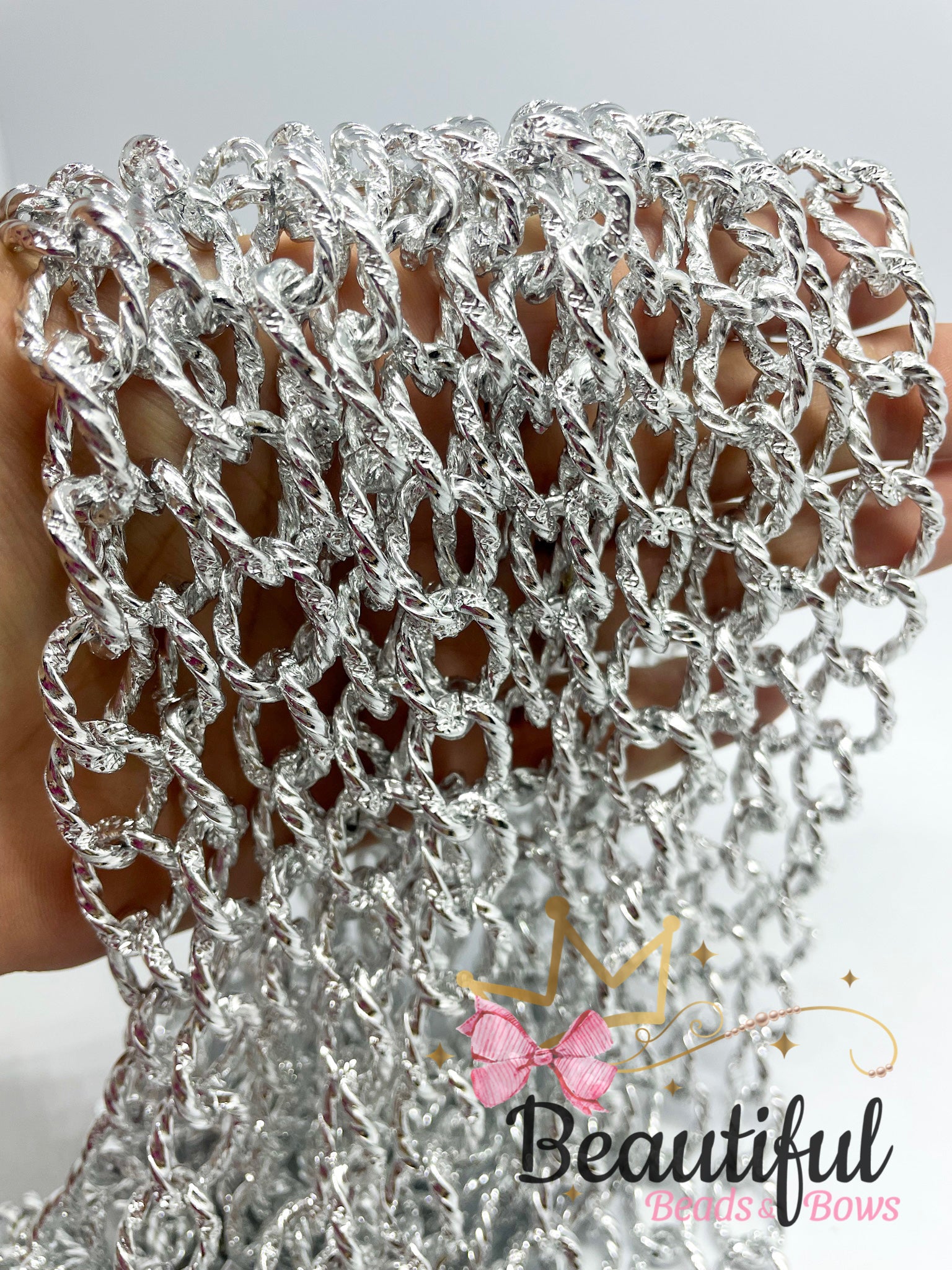 Cadena de aluminio en silver de eslabón curveado texturizado.
