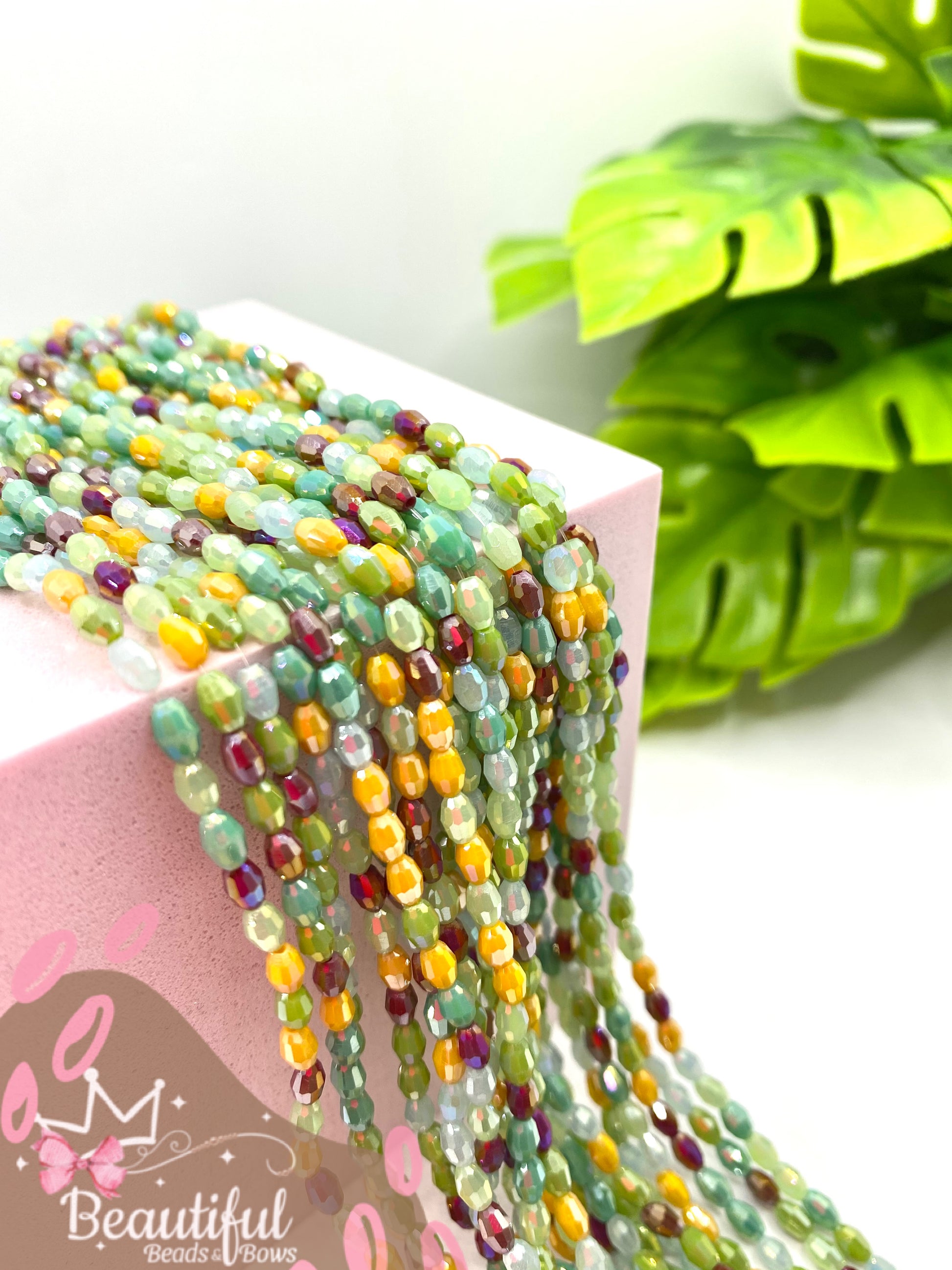 Ristra de cristal en forma de arroz facetado tamaño 4.5mm y hueco de 0.7mm. Varios colores a escoger.