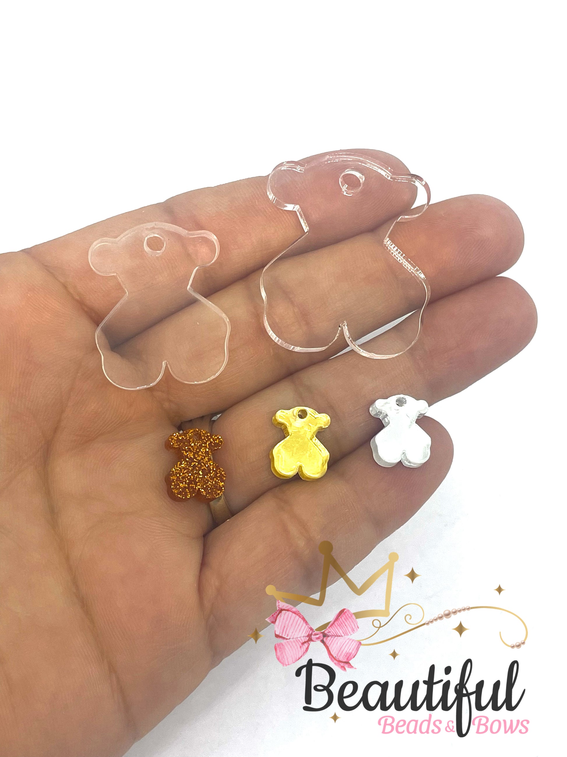 Dijes en acrílicos en varios tamaños a escoger. Precio varía según tamaño. Osos pequeños escogidos al azar.