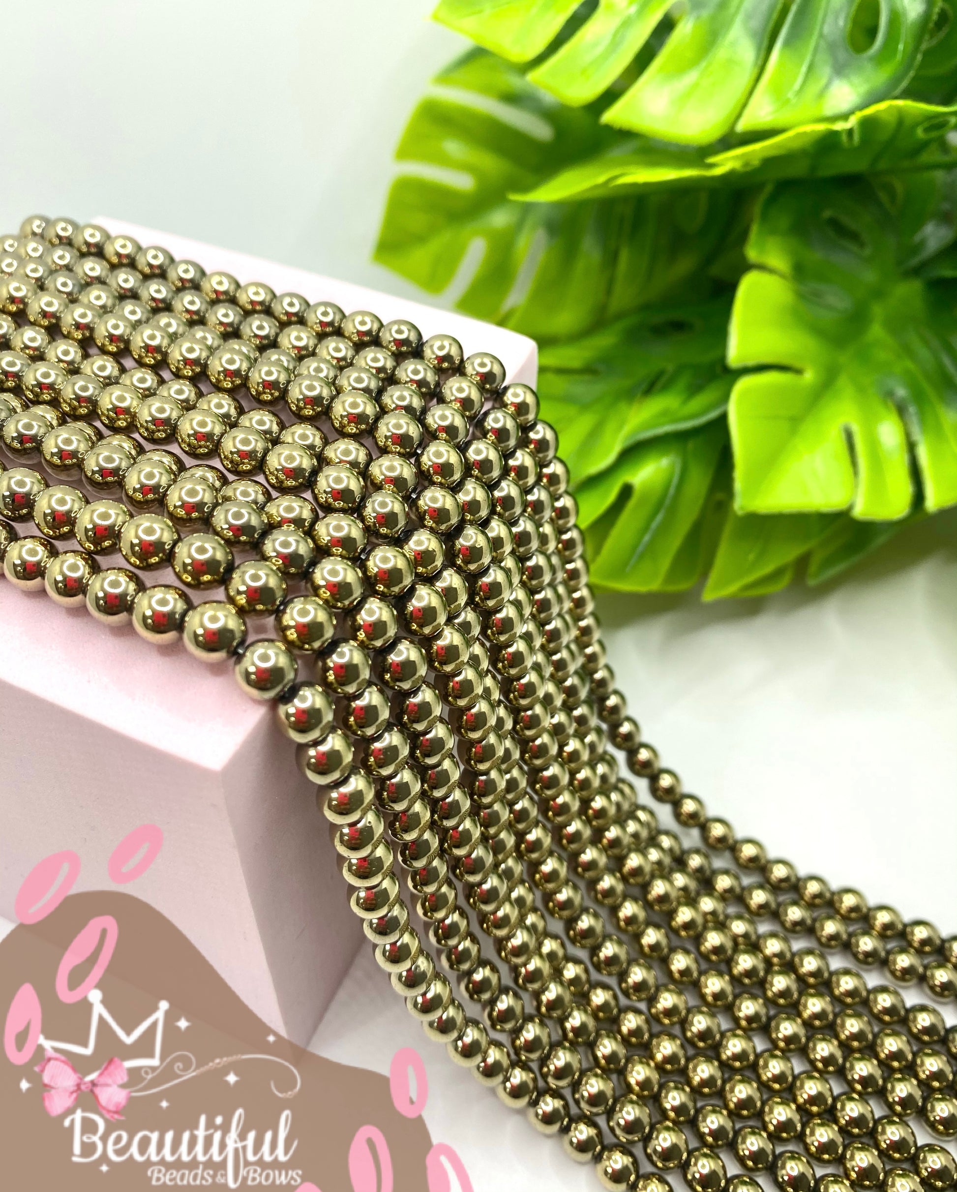 Ristra de hematita light gold en dos size a escoger 8 y 6mm con hueco de 1mm. Previo varia por tamaño.
