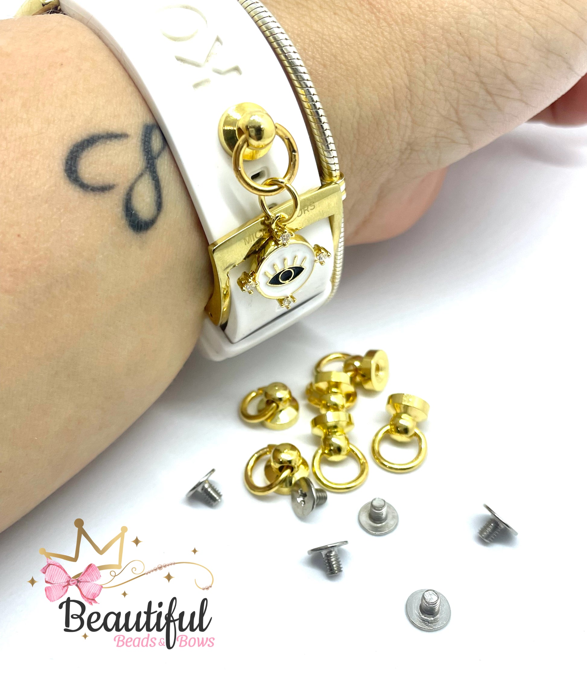 Tornillito para personalizar relojes o covers de celular con colgante. Idea mostrada en foto.