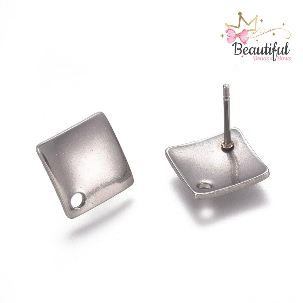 Gancho para aretes en Stainless steel tamaño 13.5mm. Viene con los broches de atrás en plástico. Dos tonos a escoger.